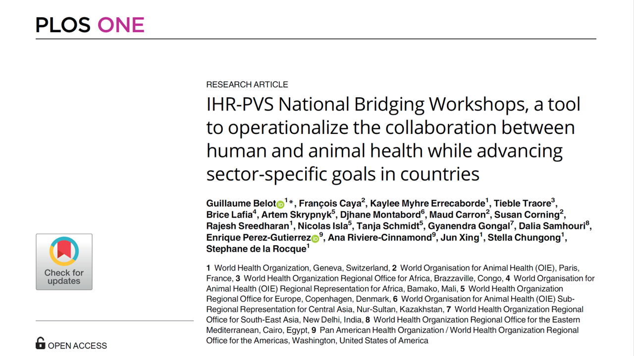 In 2014, WHO and WOAH started to develop the National Bridging Workshop (NBW), bringing together human, animal and environment health sectors. The method...
