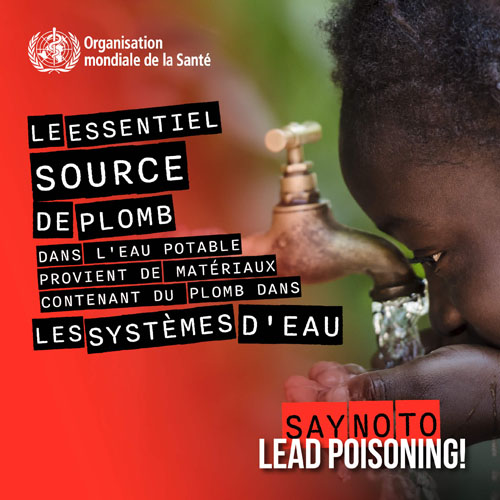 Le plomb est une substance chimique dont on estime qu’elle est une source majeure de préoccupation pour la santé publique, qui devrait figurer dans les normes nationales de qualité de l’eau de boisson et être surveillée dans le cadred’un programme de surveillance de la qualité de l’eau de boisson. Les concentrations de plomb dans l’eau de boisson doivent être maintenues à un niveau aussi bas que raisonnablement possible.