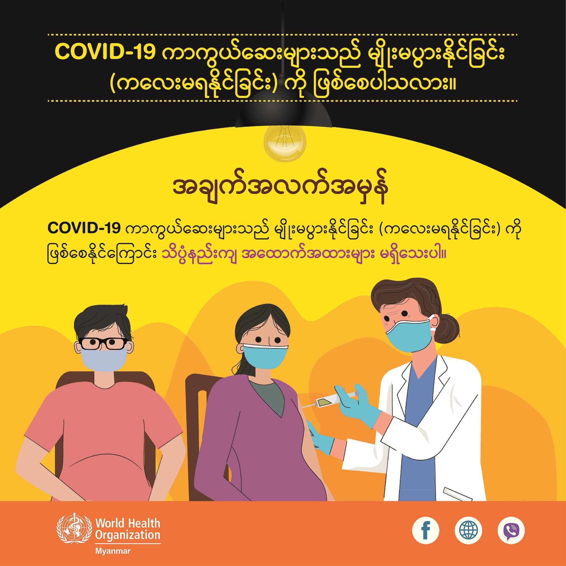 COVID-19 ကာကွယ်ဆေးများသည် မျိုးမပွားနိုင်ခြင်း (က‌လေးမရနိုင်ခြင်း)ကို ဖြစ်စေနိုင်‌ကြောင်း သိပ္ပံနည်းကျ အထောက်အထားများ မရှိသေးပါ။