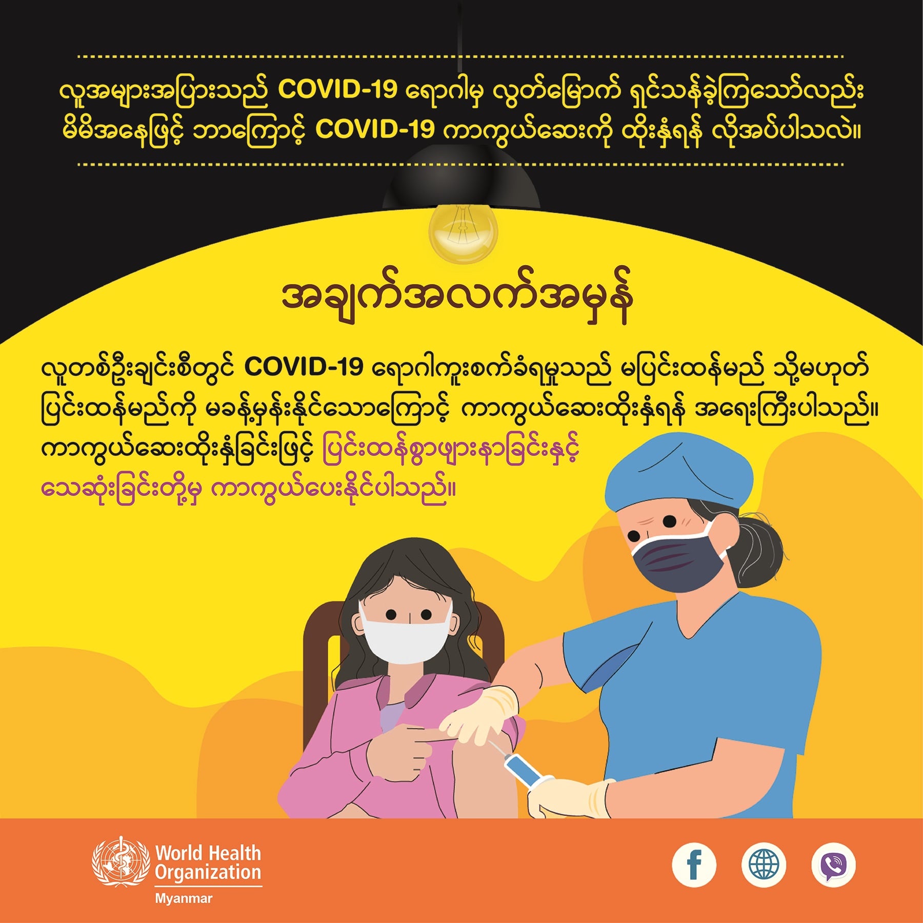 ထို့ကြောင့် COVID-19 ကာကွယ်ဆေးထိုးနှံခွင့်ရရှိသည်နှင့် အမြန်ဆုံးထိုးနှံရန် အရေးကြီးပါသည်။