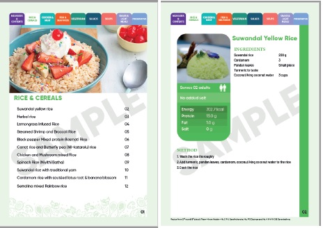 The fruit of these multi-pronged efforts is a handy and colourful recipe book that can be kept in the kitchen for easy reference.